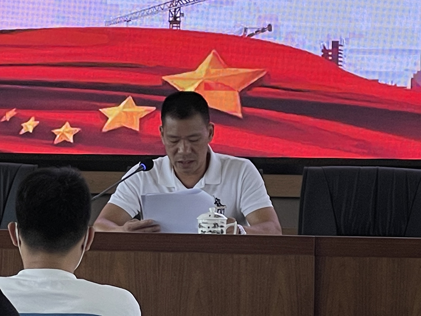 分管安全副總吳韶斌向大家宣貫《關于開展2022年市區建筑施工領域“安全生產月”活動的通知》等文件精神,將公司級“安全生產月”活動方案進行交底,并對各項目“安全生產月”活動開展作出指示及要求。